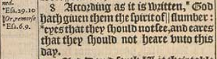 8 According as it is written, *God hath giuen them the spirit of ||slumber: *eyes that they should not see, and eares that they should not heare vnto this day.[*Esa.29.10 , ||Or, remorse , Esa.6.9.]