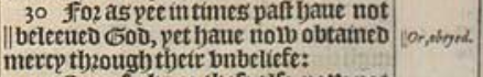 30 For as yee in times past haue not ||beleeued God, yet haue now obtained mercy through their vnbeliefe: [|| Or, obeyed.]