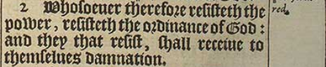 2 Whosoeuer therefore resisteth the power, resisteth the ordinance of God: and they that resist, shall receiue to themselues damnation.