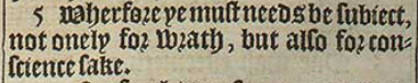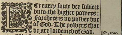 1 Let euery soule bee subiect vnto the higher powers: For there is no power but of God. The powers that be, are ||ordeined of God. [ ||Or, ordered. ]