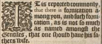 1 It is reported commonly, that there is fornication among you, and such fornication, as is not so much as named amongst the Gentiles, that one should haue his fathers wife.