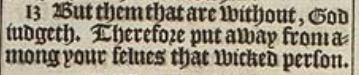 13 But them that are without, God iudgeth. Therefore put away from among your selues that wicked person.