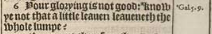 6 Your glorying is not good: *know ye not that a little leauen leaueneth the whole lumpe? [*Gal.5.9.]