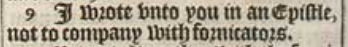9 I wrote vnto you in an Epistle, not to company with fornicators.