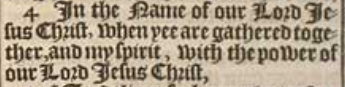 4 In the Name of our Lord Iesus Christ, when yee are gathered together, and my spirit, with the power of our Lord Iesus Christ,