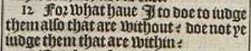 12 For what haue I to doe to iudge them also that are without? doe not ye iudge them that are within?