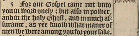 5 For our Gospel came not vnto you in word onely: but also in power, and in the holy Ghost, and in much assurance, as yee know what maner of men we were among you for your sake.