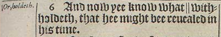 6 And now yee know what || withholdeth, that hee might bee reuealed in his time.[||Or, holdeth.]