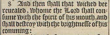 8 And then shall that wicked bee reuealed, whome the Lord shall consume with the spirit of his mouth, and shall destroy with the brightnesse of his comming: