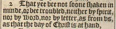 2 That yee bee not soone shaken in minde, or bee troubled, neither by spirit, nor by word, nor by letter, as from vs, as that the day of Christ is at hand,