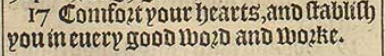 17 Comfort your hearts, and stablish you in euery good word and worke.