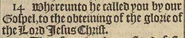 14 Whereunto he called you by our Gospel, to the obteining of the glorie of the Lord Iesus Christ.