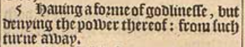 5 Hauing a forme of godlinesse, but denying the power thereof: from such turne away.