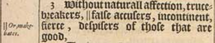 3 Without naturall affection, trucebreakers, || false accusers, incontinent, fierce, despisers of those that are good,[||Or, makebates.]