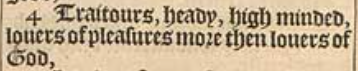 4 Traitours, heady, high minded, louers of pleasures more then louers of God,