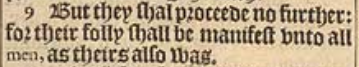 9 But they shal proceede no further: for their folly shall be manifest vnto all men, as theirs also was.