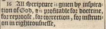 16 All Scripture is giuen by inspiration of God, & is profitable for doctrine, for reproofe, for correction, for instrution in righteousnesse,