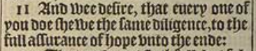 11 And wee desire, that euery one of you doe shewe the same diligence, to the full assurance of hope vnto the ende: