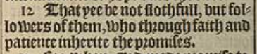 12 That yee be not slothfull, but followers of them, who through faith and patience inherite the promises.