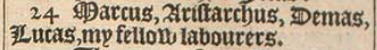 24 Marcus, Aristarchus, Demas, Lucas, my fellow labourers.