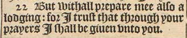 22 But withall prepare mee also a lodging: for I trust that through your prayers I shall be giuen vnto you.