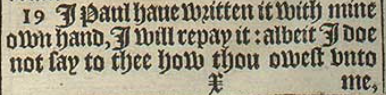 19 I Paul haue written it with mine own hand, I will repay it: albeit I doe not say to thee how thou owest vnto me, euen thine owne selfe besides: