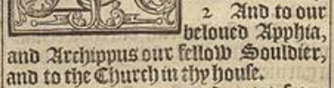 2 And to our beloued Apphia, and Archippus our fellow Souldier, and to the Church in thy house.