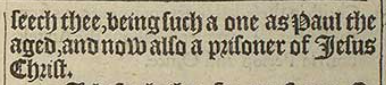 9 Yet for loues sake I rather beseech thee, being such a one as Paul the aged, and now also a prisoner of Iesus Christ.