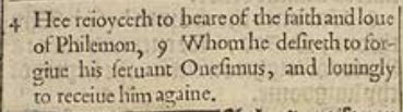 4 Hee reioyceth to heare of the faith and loue of Philemon, 9 Whom he desireth to forgiue his seruant Onesimus, and louingly to receiue him againe.