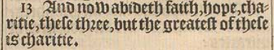 13 And now abideth faith, hope, charitie, these three, but the greatest of these is charitie.
