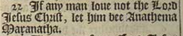 22 If any man loue not the Lord Iesus Christ, let him bee Anathema Maranatha.