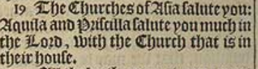 19 The Churches of Asia salute you: Aquila and Priscilla salute you much in the Lord, with the Church that is in their house.