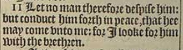 11 Let no man therefore despise him: but conduct him forth in peace, that hee may come vnto me: for I looke for him with the brethren.