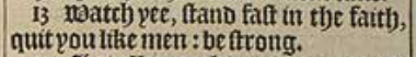 13 Watch yee, stand fast in the faith, quit you like men: be strong.