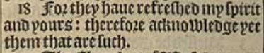 18 For they haue refreshed my spirit and yours: therefore acknowledge yee them that are such.
