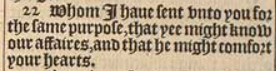 22 Whom I haue sent vnto you for the same purpose, that yee might know our affaires, and that he might comfort your hearts.