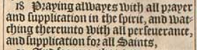 18 Praying alwayes with all prayer and supplication in the spirit, and watching thereunto with all perseuerance, and supplication for all Saints,