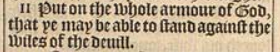 11 Put on the whole armour of God, that ye may be able to stand against the wiles of the deuill.