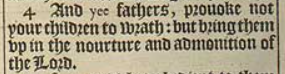 4 And yee fathers, prouoke not your children to wrath: but bring them vp in the nourture and admonition of the Lord.