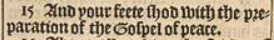 15 And your feete shod with the preparation of the Gospel of peace.