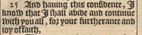25 And hauing this confidence, I know that I shall abide and continue with you all, for your furtherance and ioy of faith,