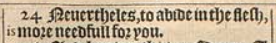 24 Neuertheles, to abide in the flesh, is more needfull for you.