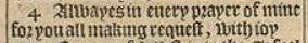 4 Alwayes in euery prayer of mine for you all making request, with ioy