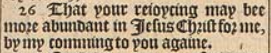 26 That your reioycing may bee more abundant in Iesus Christ for me, by my comming to you againe.