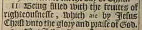 11 Being filled with the fruites of righteousnesse, which are by Iesus Christ vnto the glory and praise of God.