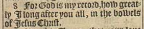 8 For God is my record, how greatly I long after you all, in the bowels of Iesus Christ.
