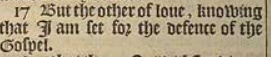 17 But the other of loue, knowing that I am set for the defence of the Gospel.