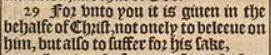 29 For vnto you it is giuen in the behalfe of Christ, not onely to beleeue on him, but also to suffer for his sake,