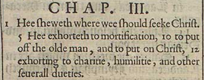 1 Er zeigt, wo wir Christus suchen sollten. 5 Er ermahnt zur Abtötung, 10 den alten Menschen abzulegen und Christus anzuziehen, 12 ermahnt zur Barmherzigkeit, Demut und anderen verschiedenen Pflichten.