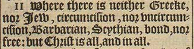 11 Where there is neither Greeke, nor Iew, circumcision, nor vncircumcision, Barbarian, Scythian, bond, nor free: but Christ is all, and in all.